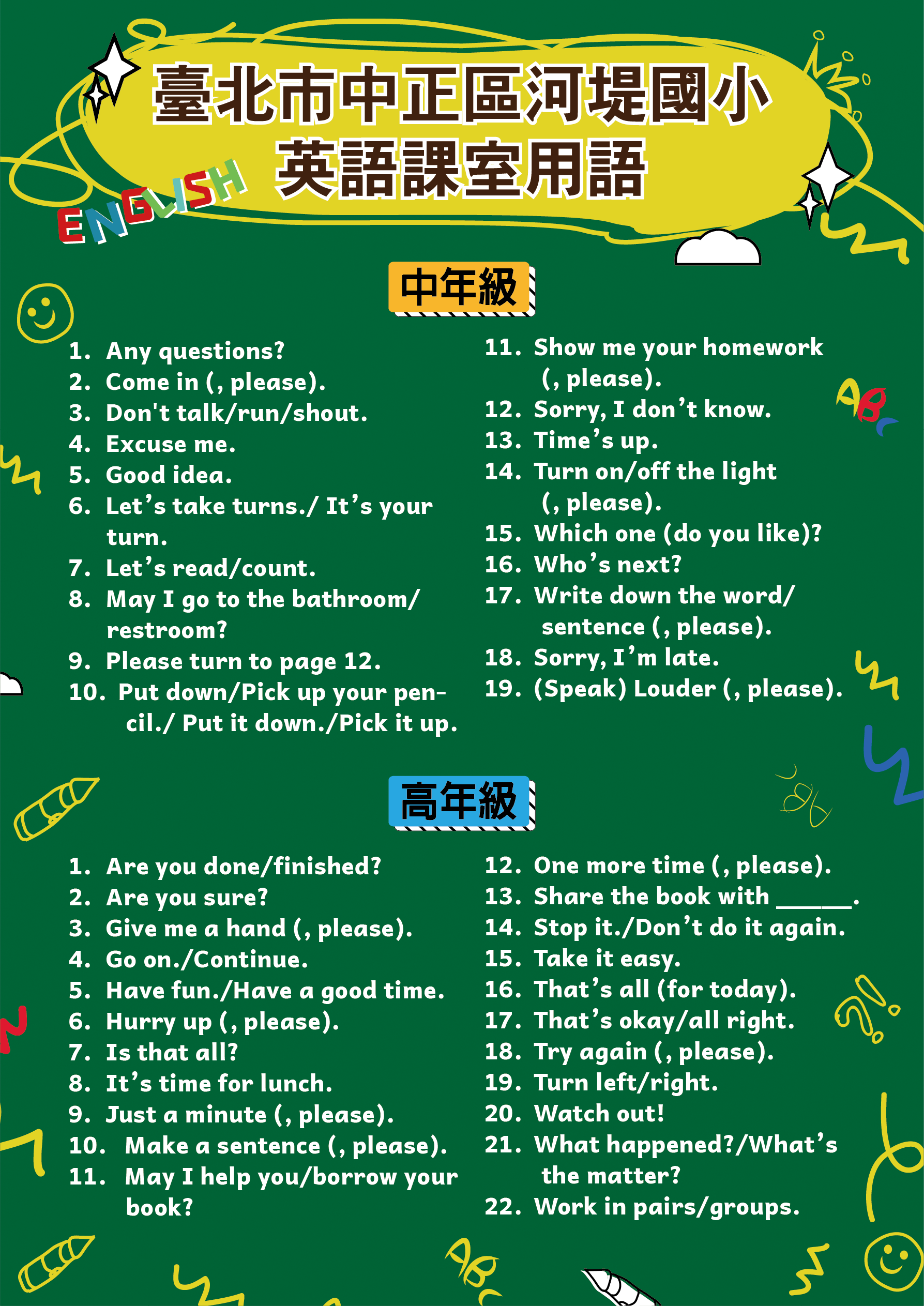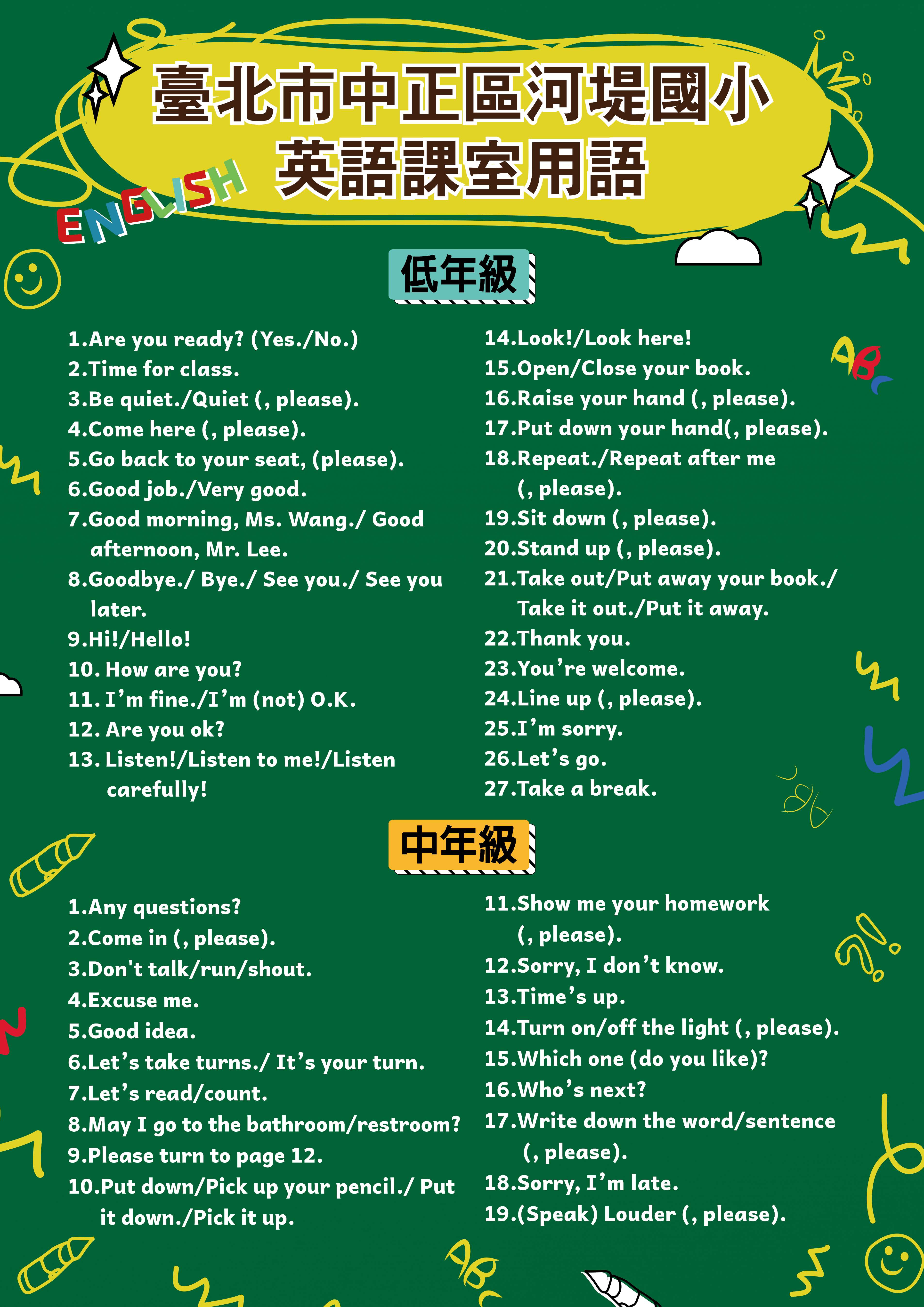 提供本校課室英語海報供家長、學生參考使用。