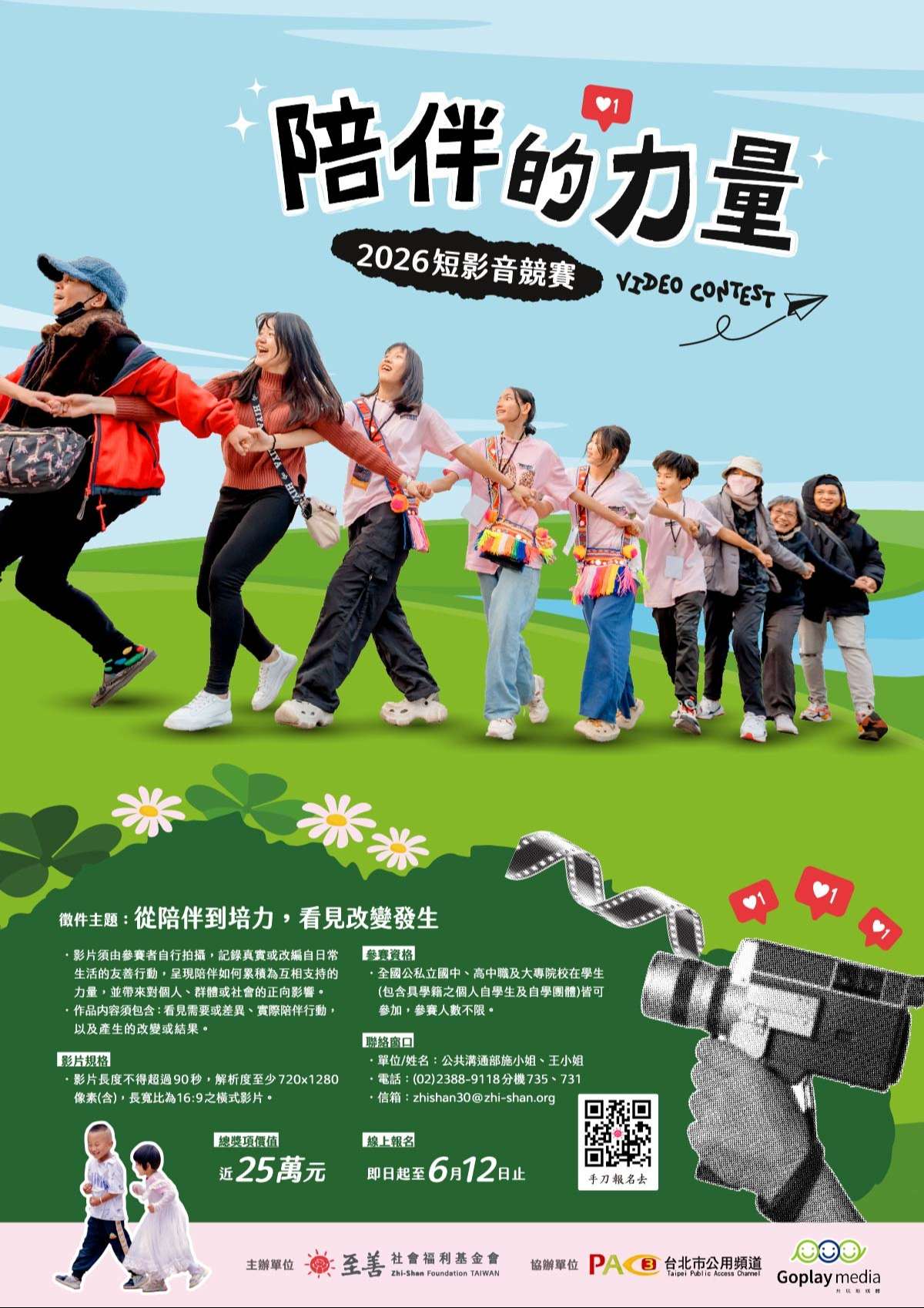 一、本會(https://www.zhi-shan.org/)長期從事亞洲四地兒少發展工作,為響應《兒童權利公約》(CRC)禁止歧視原 則,自2023年起推動「校園族群友善」倡議,並自2025年 辦理短影音競賽。2026年以「從陪伴到培力,看見改變發 生」為主題,邀請全國學生共同參與,展現青少年世代推 動友善行動的能量。