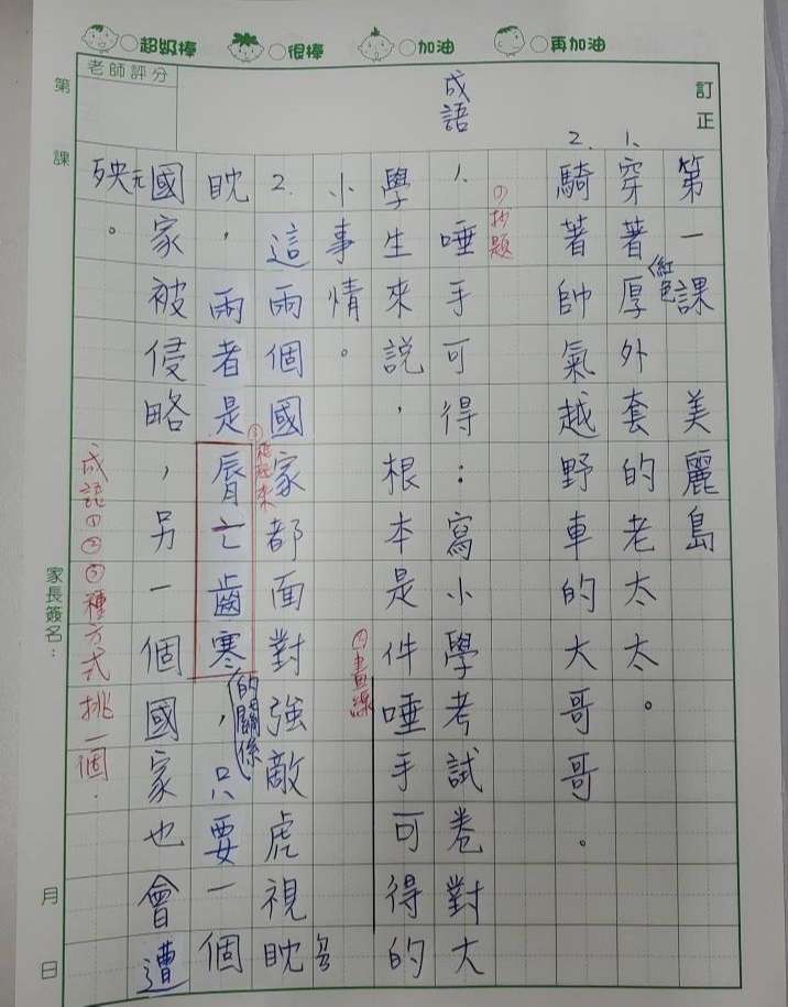 2. 國語造句本第一課 (寫法請看附加檔案照片)