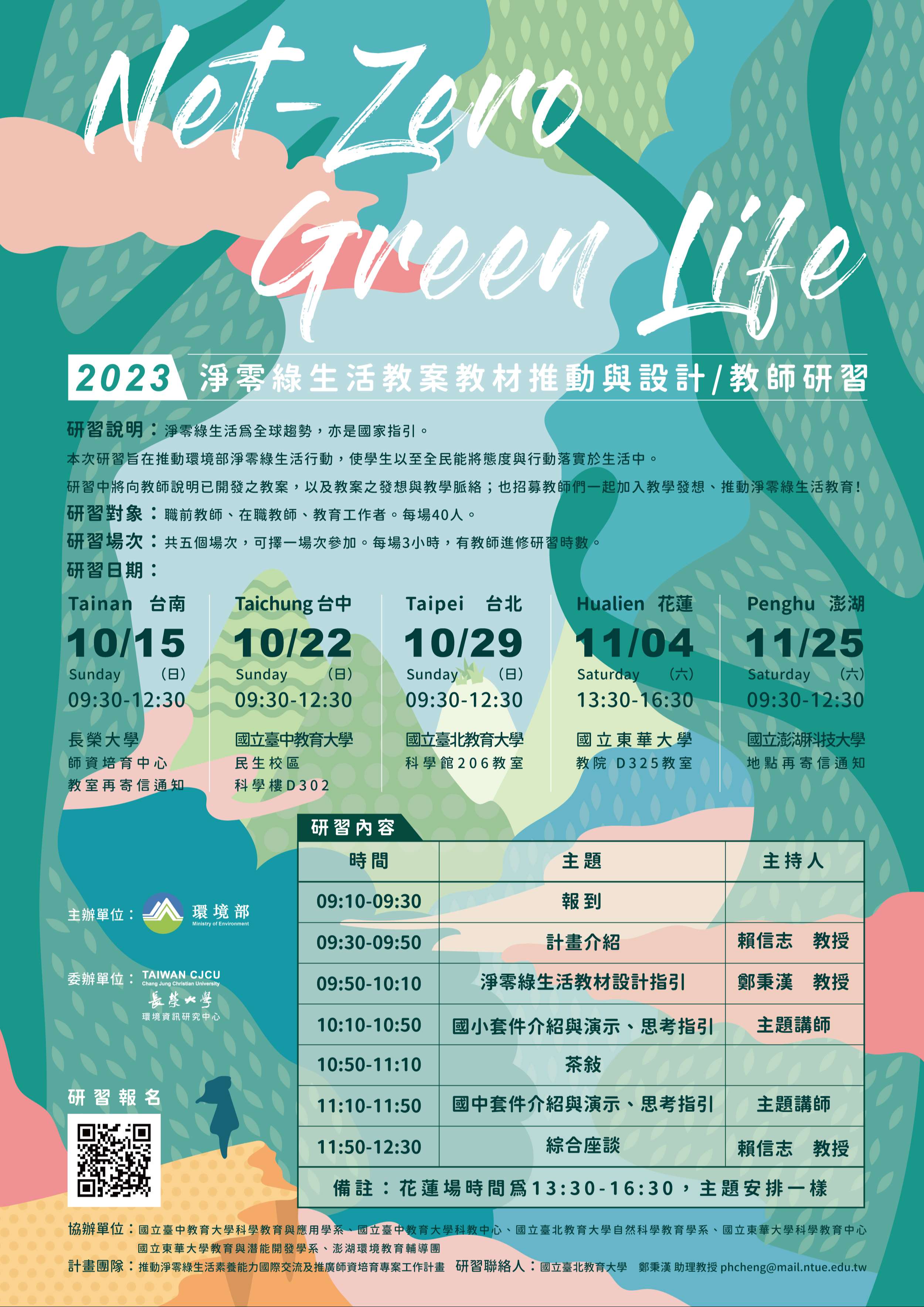 一、為推動環境部淨零綠生活行動,透過教育使學生以至全民能將態度與行動落實於生活中,辦理旨揭研習。